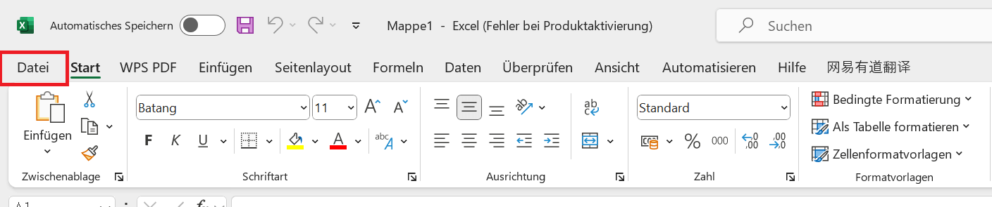 Schritt 3: Klicke auf die Registerkarte „Datei“ in der oberen linken Ecke deines Bildschirms.