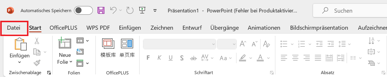 Schritt 5: Speichern der Vorlage: Gehe zur Registerkarte "Datei" oben links im Fenster.