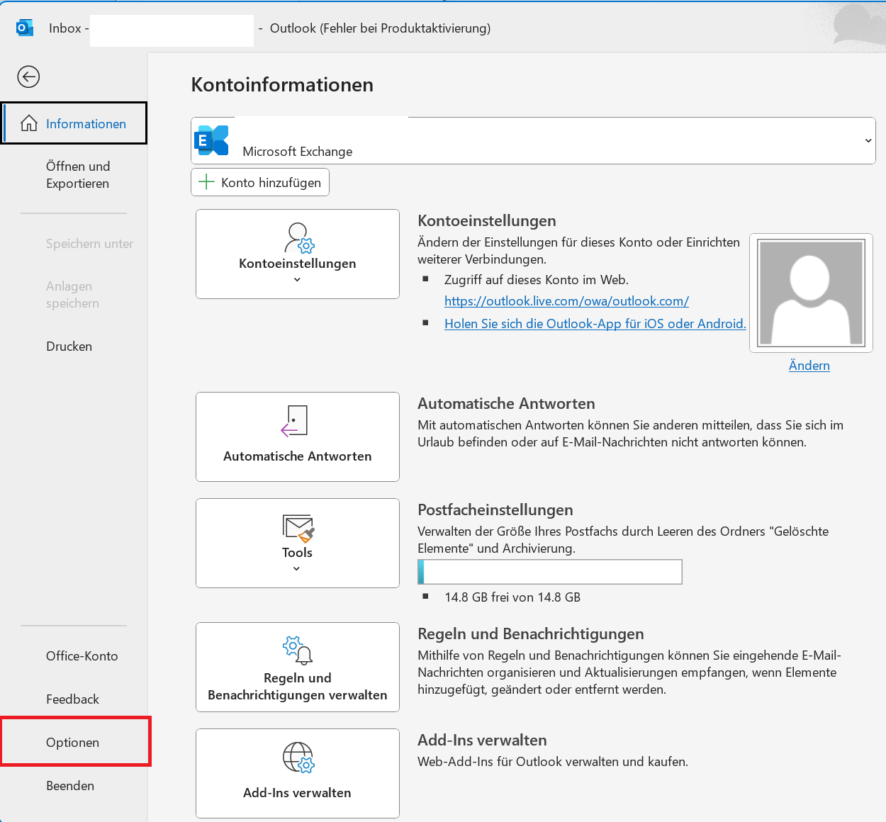 Schritt 2: Klicke auf „Optionen“. Dadurch wird ein Einstellungsfenster geöffnet.