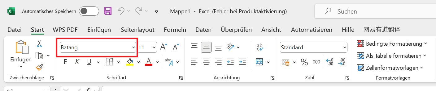 Schritt 2: Du bemerkst vielleicht, dass die Standardschriftart derzeit auf Aptos Narrow eingestellt ist.