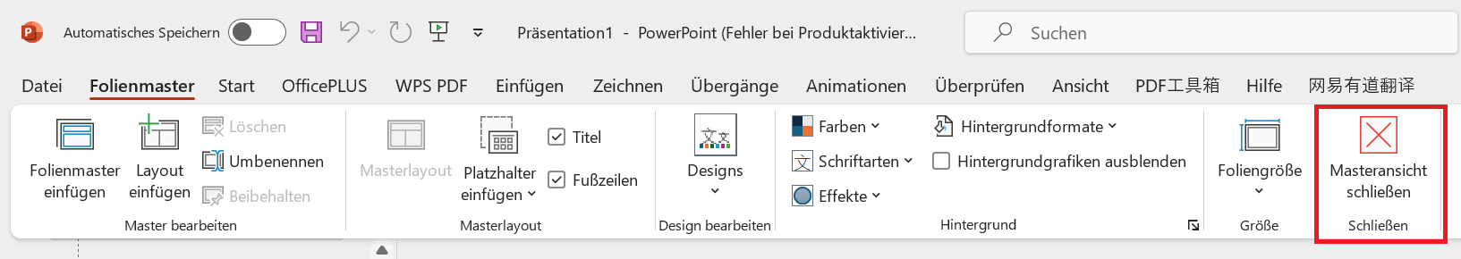 Schritt 4: Nachdem du die gewünschte Schriftart ausgewählt hast, klicke auf die Schaltfläche "Masteransicht schließen", um zur Hauptansicht deiner Präsentation zurückzukehren.