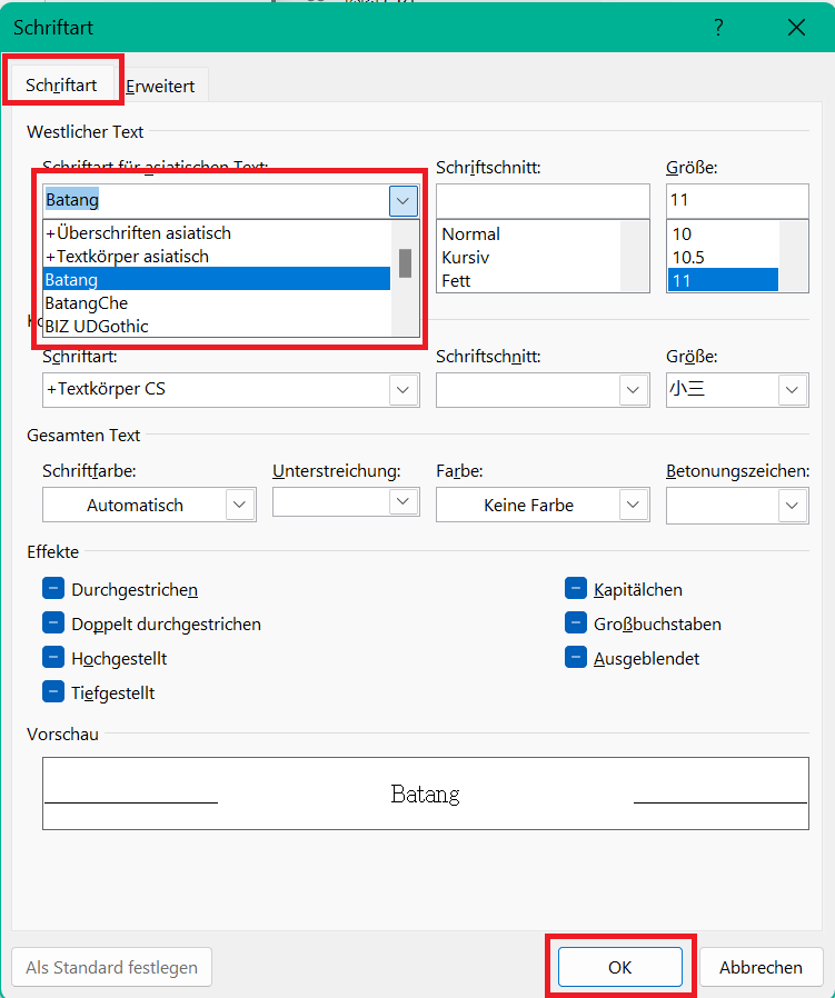 Schritt 6: Klicke auf die Schaltfläche „Schriftart“, um ein neues Fenster mit allen möglichen Schriftartenoptionen zu öffnen.