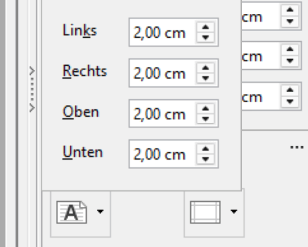 2. Schau dir unter „Seitenvorlage Standard“ mit einem Klick auf den Button „Rand“ die eingestellten Seitenränder an – notiere sie dir.