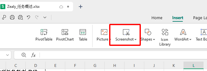 Schritt 3 : Screenshot auswählen – WPS Office bietet eine Funktion, mit der Benutzer einen Screenshot des ausgewählten Bereichs erstellen können. Nachdem Sie den Bereich ausgewählt haben, wechseln Sie zur Registerkarte „Einfügen“ und klicken Sie auf „Screenshot“.