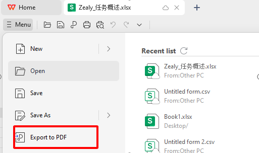 WPS Office ist eine gute Alternative, wenn Sie XLSX sicher und zuverlässig in PDF umwandeln möchten. Es handelt sich um ein vollständiges Office-Paket mit einer Tabellenkalkulationsfunktion, die in vielerlei Hinsicht Excel ähnelt und es Benutzern ermöglicht, Tabellen ohne großen Aufwand in das PDF-Format zu konvertieren. So geht's: