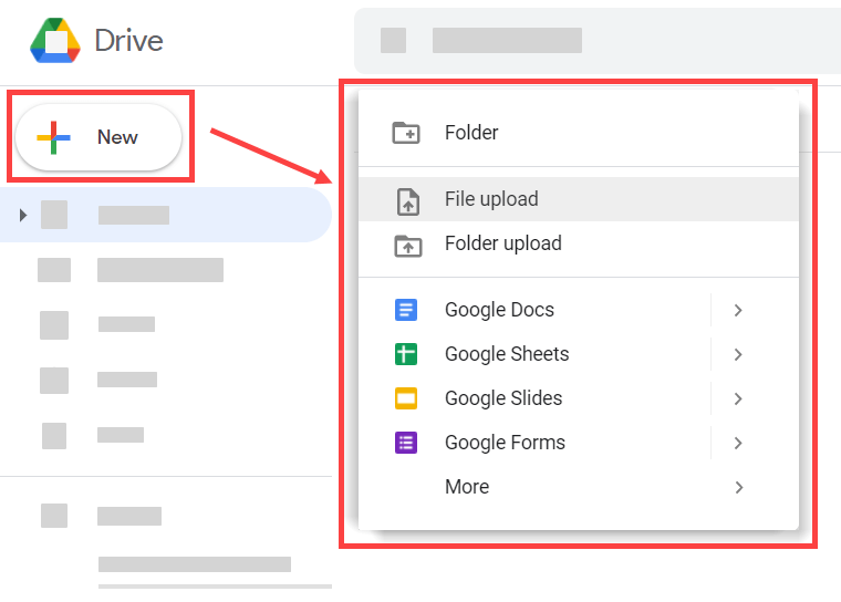 Schritt 1: Laden Sie Ihre XLSX-Datei in Google Drive hoch.