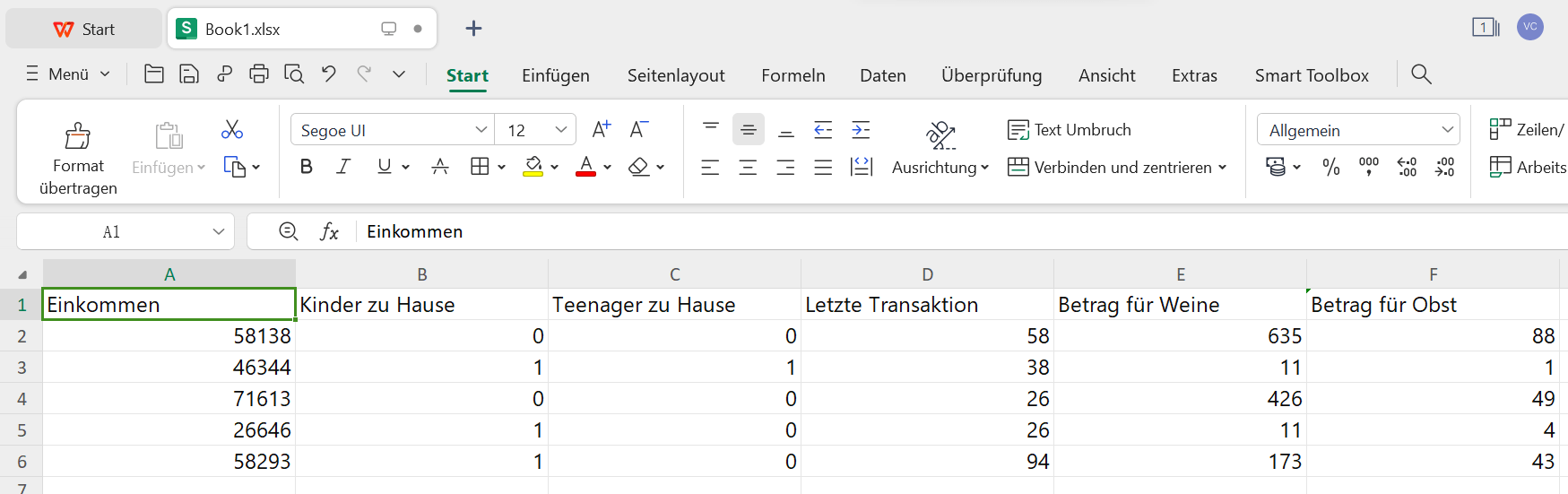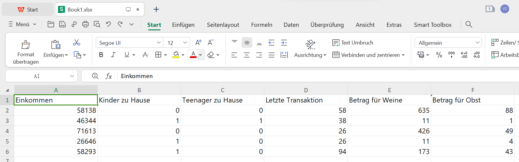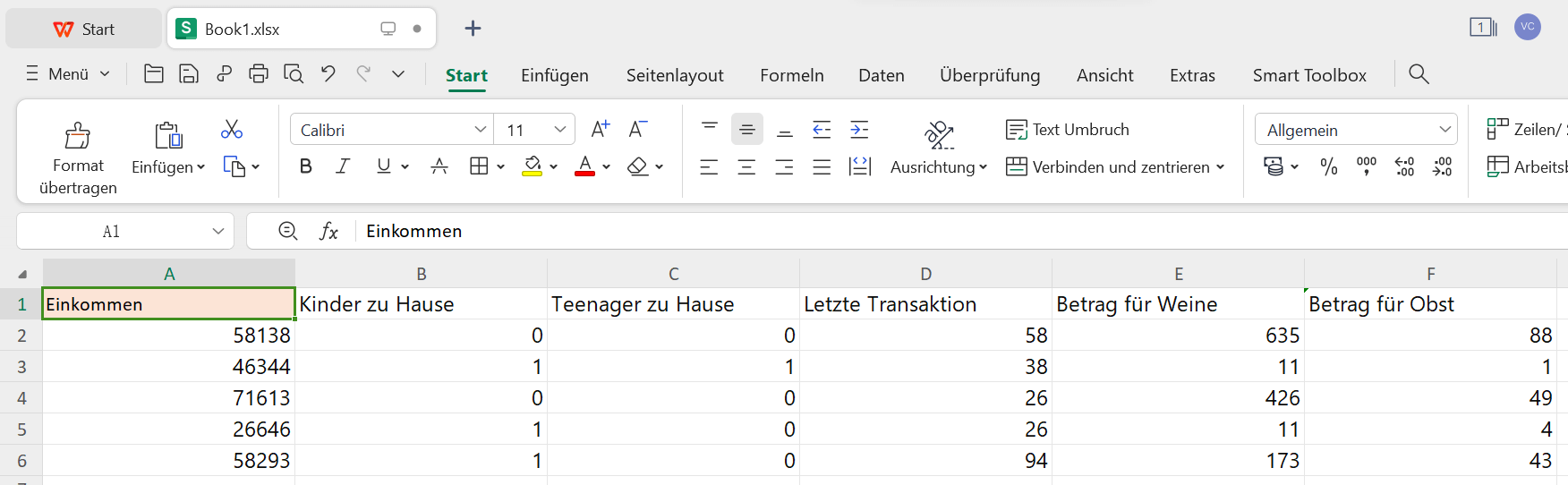 Schritt 1: Öffnen Sie Ihre Excel-Tabelle im WPS Office und wechseln Sie zum Register "Einfügen".