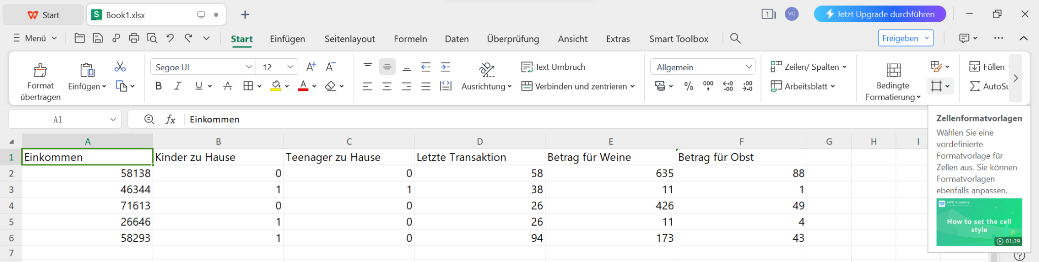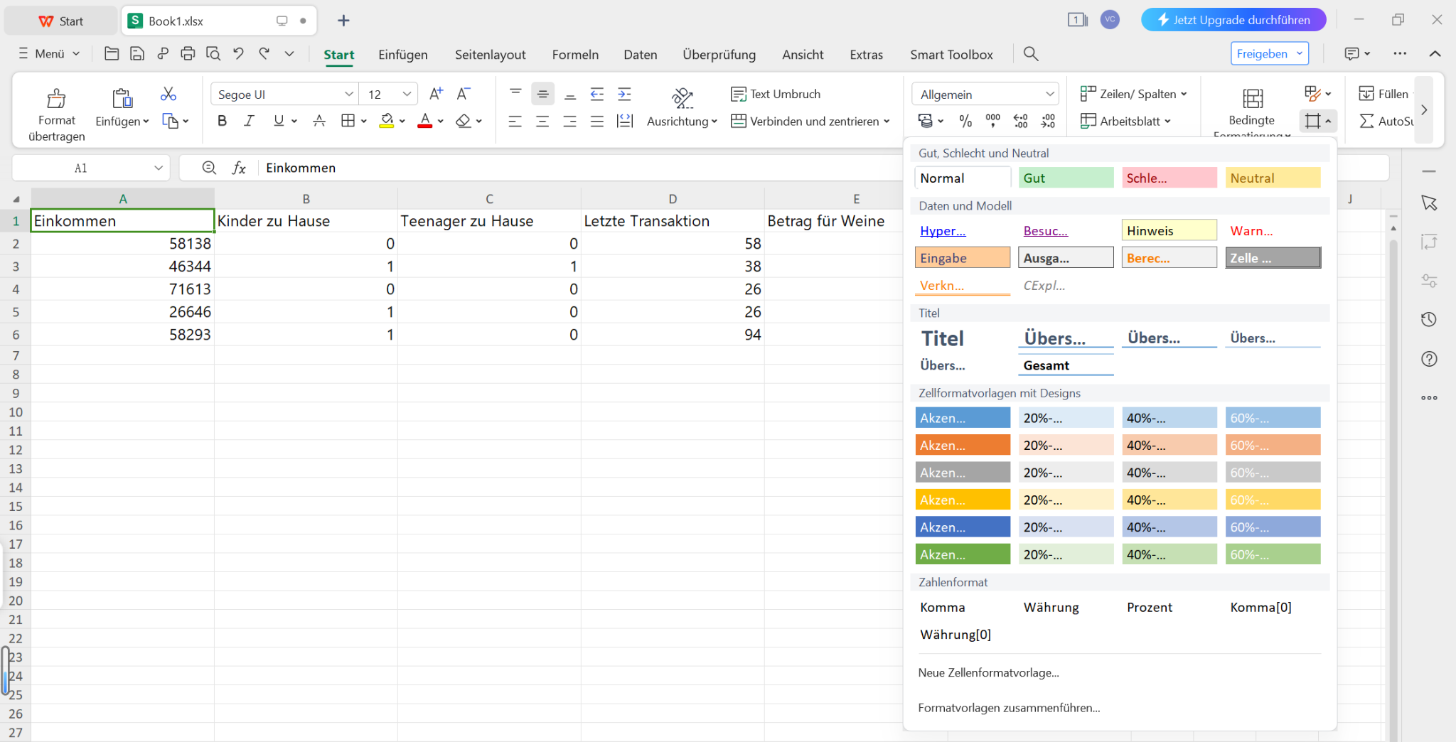 Die nächste Option zum Hervorheben in Excel mit WPS Office besteht darin, Zellen Stile von WPS Office zu nutzen. WPS Office bietet eine Vielzahl von Zellen Stilen zur Auswahl, und hier finden Sie sie: