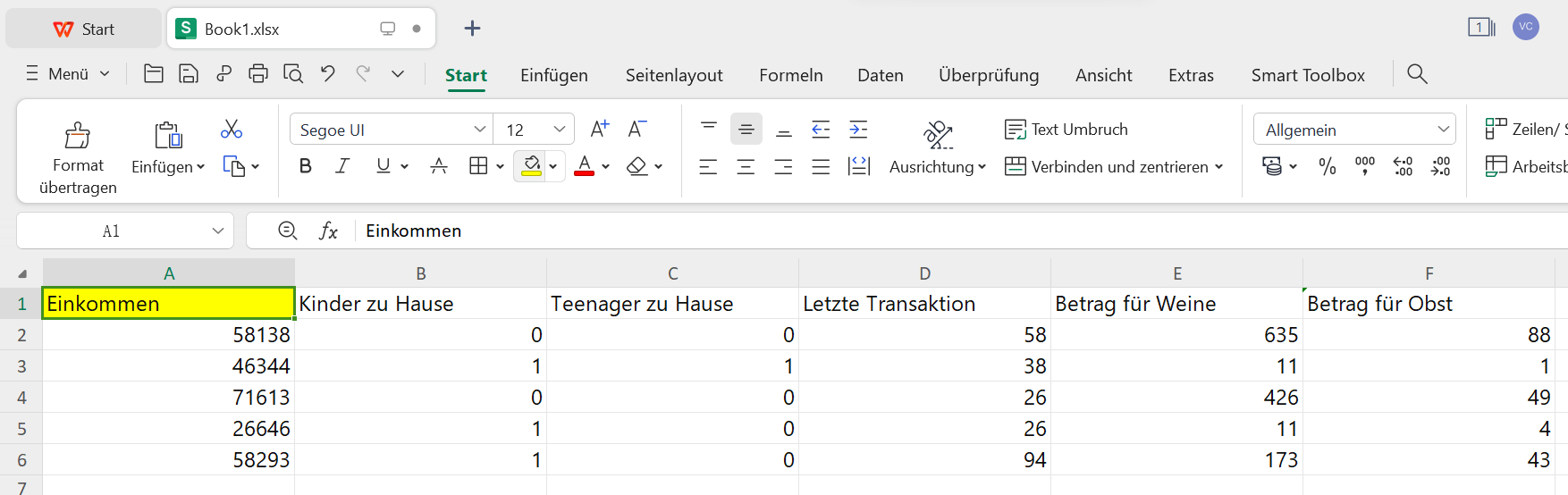 Schritt 1: Öffnen Sie Ihre Excel-Tabelle im WPS Office und wählen Sie die Zeilen und Spalten aus, die Sie als Tabelle formatieren möchten.