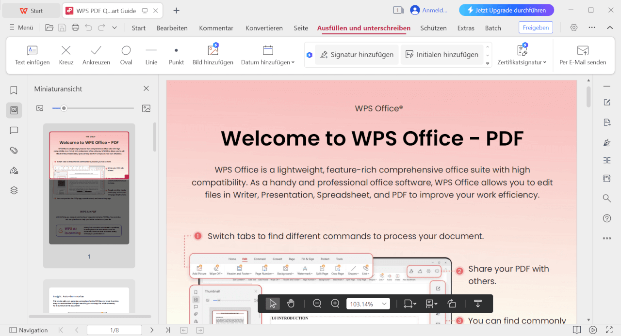 Zuerst und vor allem ist die Auswahl eines zuverlässigen PDF-Bearbeitungsprogramms wie WPS Office mit Unterstützung für Signaturen entscheidend. Das gewährleistet die Sicherheit und Authentizität Ihres Dokuments.