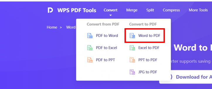 Schritt 3: Wähle "Word zu PDF" aus der Liste der Konvertierungsoptionen.