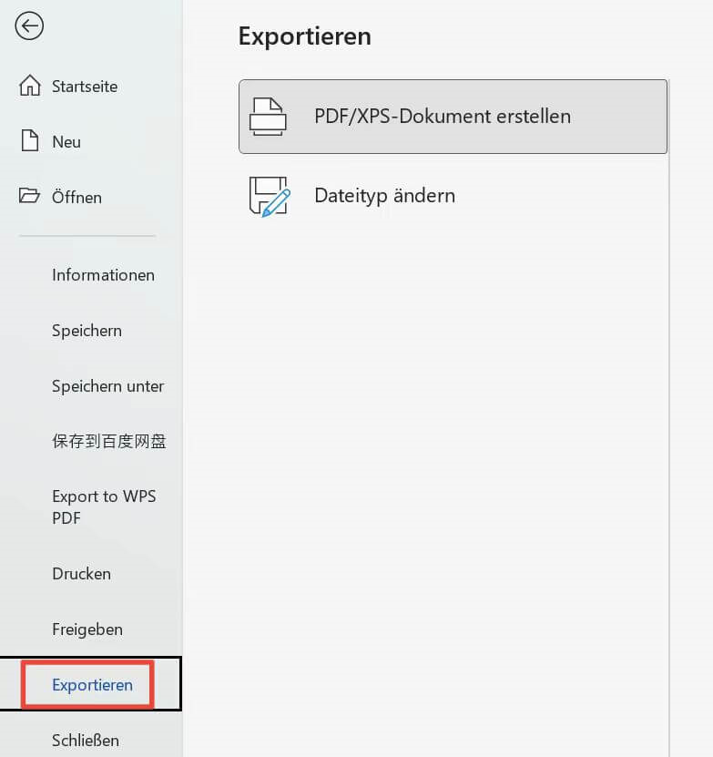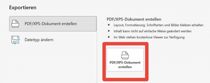 Schritt 4: Klicke auf die Schaltfläche "PDF/XPS erstellen".