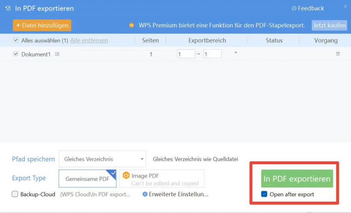 Schritt 5: Gehe die verschiedenen Optionen durch und klicke auf den Button "Exportieren als PDF".