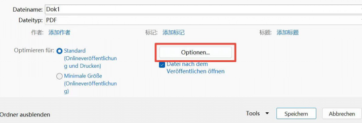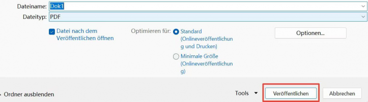 Schritt 5: Klicke auf "Veröffentlichen", um das PDF zu speichern.
