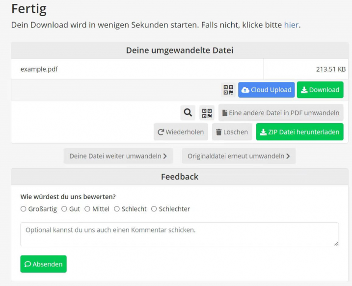 Schritt 4: Die konvertierte Datei wird automatisch im PDF-Format heruntergeladen.